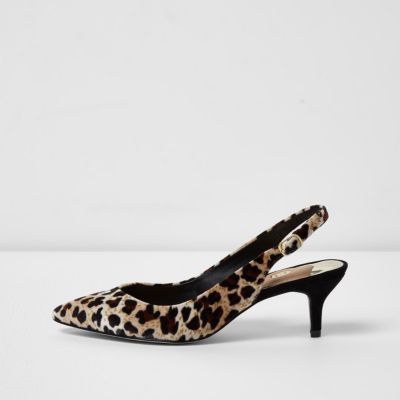 Brown Leopard Slingback Kitten Heel Shoes Shoes Shoes | Kitten Heel Slingback Shoes