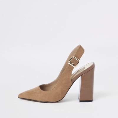 Dark Brown Block Heel Slingback Court Shoes Shoes | Brown Block Heels