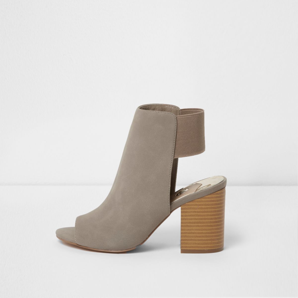 Grey Faux Suede Block Heel Shoe Boots Sandals Shoes | Grey Block Heels
