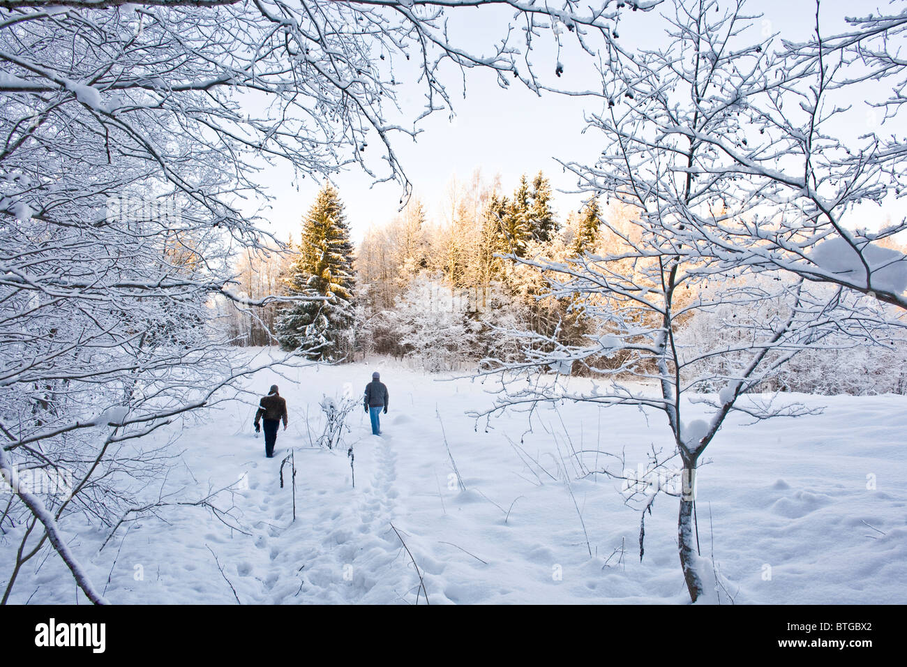 Stockholm Sweden Park Winter Snow Sunrise People Stock | Winter Stock Photo