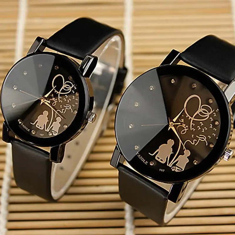 Pu Leather Couple Lover Stainless Steel Mens Womens Quartz | Couple Watch Pic